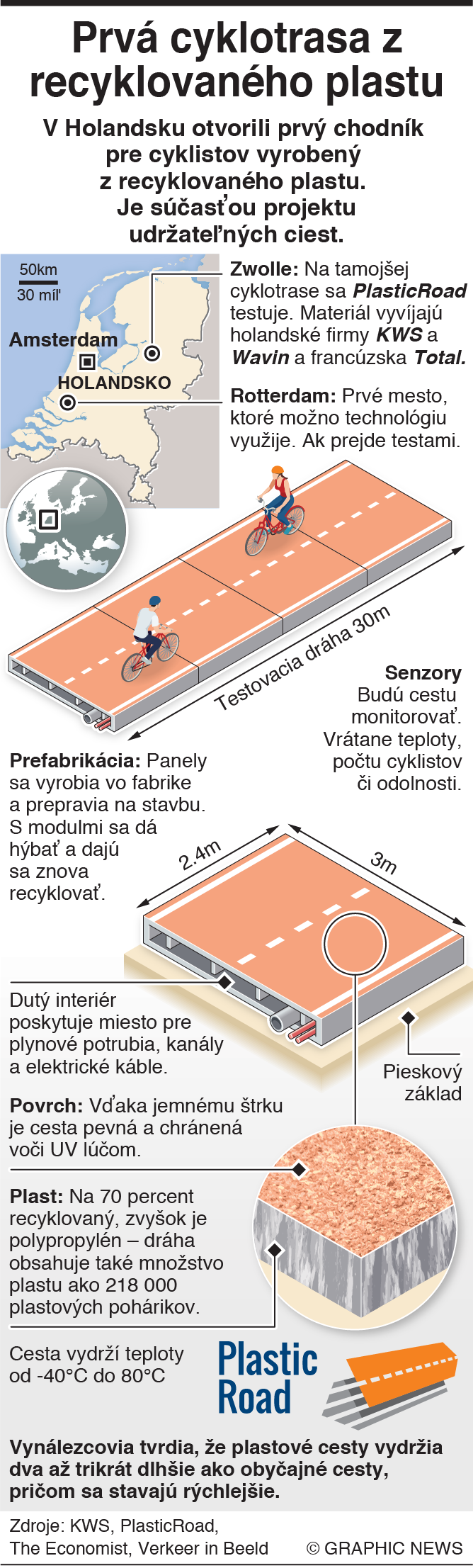 Ide o test pre projekt PlasticRoad, ktorý vyvíjajú holandské firmy KWS a Wavin spolu s francúzskym energogigantom Total.